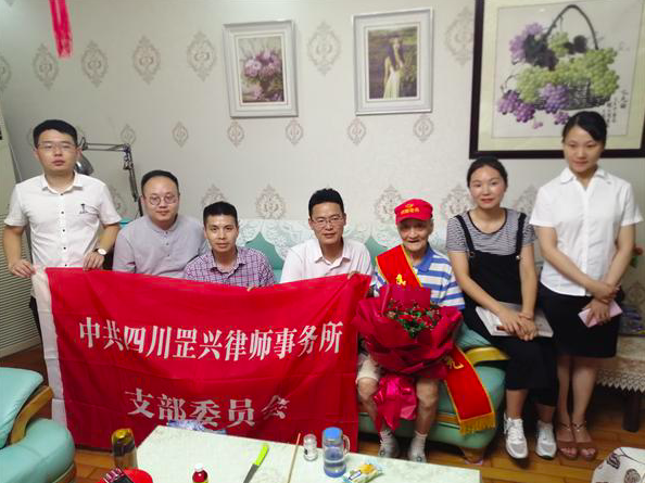 为庆祝中国共产党99周年华诞,四川罡兴律师事务所党支部联合南充市顺庆区怡然志愿者协会党支部走访了家居南充市顺庆城区的老党员、中国远征军抗日老兵、黄埔同学会健在老兵,送去慰问品。