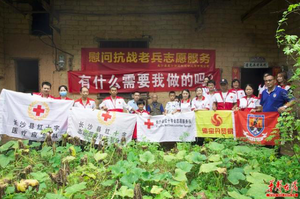 长沙县红十字会组织二十余名红十字志愿者来到明月村,带上蛋糕、长寿面、慰问金等物资,走访慰问抗战老兵粟翼航,为老人家庆生并进行全面健康体检,以实际行动致敬抗战老兵,向最美志愿者“小飞”(李敏)学习。