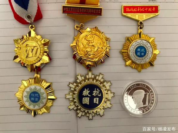 胡明军老人的相框摆放在桌子上,老人的儿子抱来一堆盒子,打开来,全都装着闪闪发光的军功章:“抗战英雄,民族脊梁”“抗战精神,光耀中华”“抗日救国”“向抗战老兵致敬”等。看到这些军功章,我仿佛听到了战争的炮火,仿佛听到战士冲锋陷阵的呐喊,仿佛听到刺刀插入敌人心脏的勇猛,仿佛听到日本投降抗战胜利的全民欢呼……