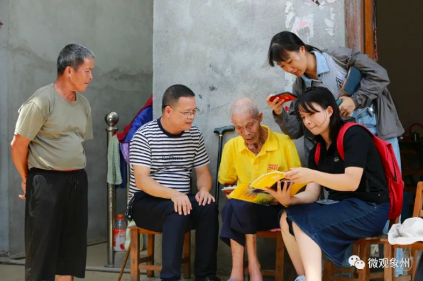 8月7日,来宾日报两名90后记者来到象州镇古才村委小下田村,拜访105岁的抗战老兵熊兆宣,聆听老人讲述那段硝烟弥漫的历史,一同追忆那光辉的历史岁月。