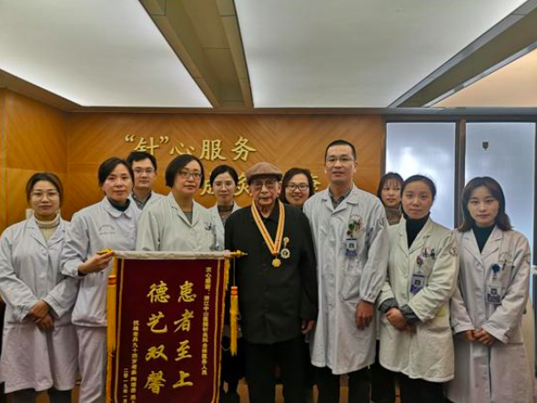 “如果我没来这边,我都不知道自己现在会是什么样,可能还是躺在床上动不了……自从开始针灸治疗,我的耳聋也好了很多,你说话我都听得很清楚了。”陶老的话语朴实而真挚:“中山医院的医生护士都很好,他们不仅医术水平高,对我也很关心,我还在这边过了98岁的生日。明天是医师节,我一定要表达我对各位医师的衷心感谢,我想买个蛋糕送给医师护士,让大家高兴高兴!”
