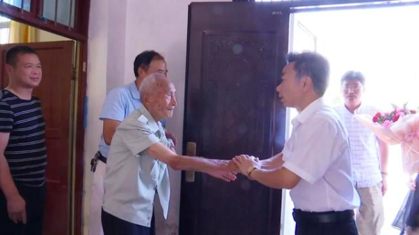 中国人民抗日战争暨世界反法西斯战争胜利75周年纪念日前夕,8月28日,县委书记熊晋喜先后来到蒲亭镇、磨溪乡走访慰问王龙根和李步宏两位抗战老兵,为他们送上慰问金,并向他们致以崇高的敬意和诚挚的问候,感谢他们为党和国家做出的贡献。县委常委、政法委书记郭勇一同走访。