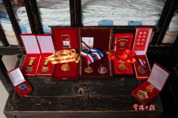 抗战老兵龙瑞清的荣誉勋章。