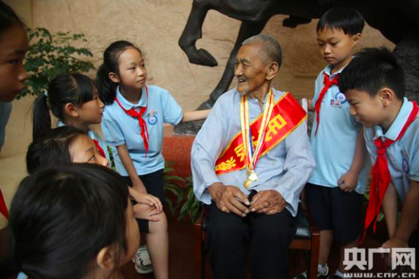 浙江台州:小学生聆听百岁抗战老兵讲述抗战故事
