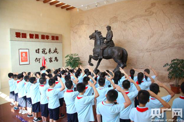 9月3日是纪念中国人民抗日战争胜利暨世界反法西斯战争胜利75周年的日子。当天上午,浙江台州市路桥区横街镇中心小学的50多名5年级学生来到浙江省爱国主义教育基地——陈安宝烈士纪念馆缅怀烈士,并聆听百岁抗战老兵讲述抗战故事。