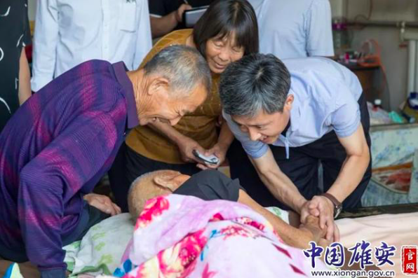 雄安新区公共服务局局长高立春正在与抗战老兵陈章怀亲切地交谈。中国雄安官网记者李鑫 摄