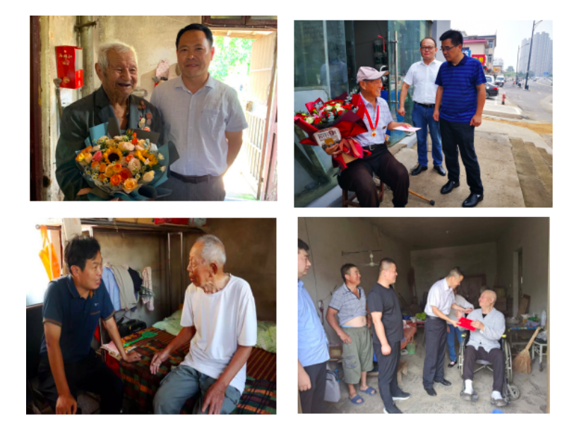 广泛开展走访慰问抗战老兵活动。市、县、乡三级联动,集合退役军人服务站和志愿服务团队力量,组成慰问小分队,开展普遍走访慰问,传递党和政府的关怀关爱。慰问队伍每走访一位抗战老兵都与他们促膝交谈,倾听他们的抗战故事,向他们致以崇高的敬意、送去真诚的祝福,并嘱咐老兵们保重身体,对他们的生活困难及时解决,让他们安度晚年。