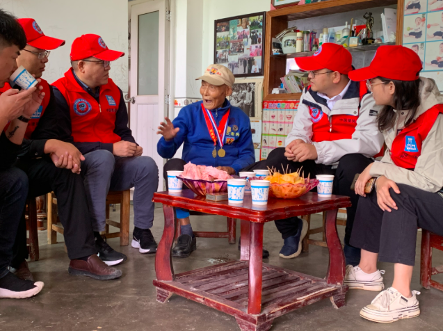 蓝宝青年志愿者一行看望了柳元青、林云德、王迪辉3位抗战老兵,为他们送上油、大米、牛奶、水果等生活物资,向老兵致敬,致以节日的祝福。