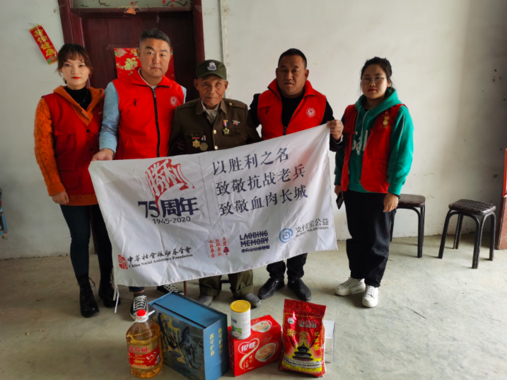2020年10月7日,值国庆节到来之际,涡阳县爱心者协会党团员代表一行16人分成三组走访慰问居住在公吉寺、牌坊、龙山、楚店等多个乡镇的11名健在抗战老兵,在国庆期间向老兵们送上社会爱心人士的问候。整个慰问活动行程将近300公里,每组耗时都在5小时以上,虽然很累很辛苦,但是志愿者们一想到能够给抗战老兵带去慰籍,心中就充满动力。