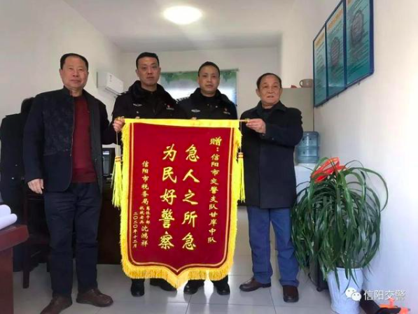 没想到的是,对于此次帮助,沈鸿祥老人一直念念不忘,不仅自己多次向亲戚朋友讲述此事,还嘱咐儿子沈培勇一定要给帮助他的交警送去锦旗和感谢信。于是,便出现了开头的一幕。