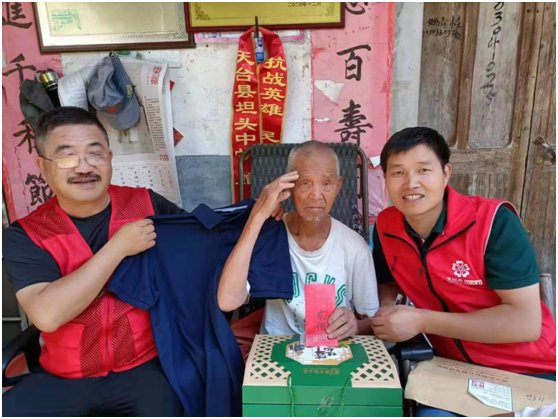 为了让老兵感受到抗战生涯给他们带来的无上荣光,在爱心人士的支持下,红心社制作了一块块金光闪闪的匾额,还有许多印有各种抗战印记的羽绒服、围巾、马甲等,用简朴而隆重的仪式送到老兵家中,让他们当年誓死杀敌的爱国情怀,赢来世人对他们的崇敬,赢来他们人生最后的荣耀。