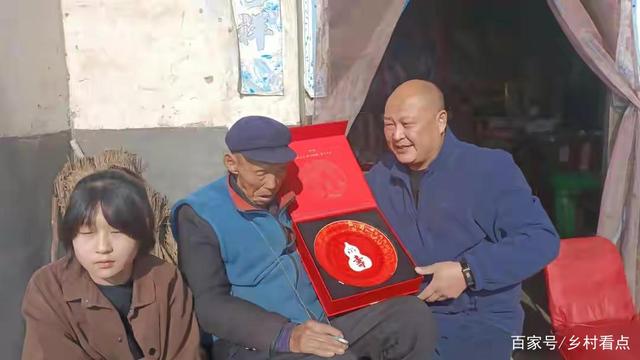 2021年11月27日上午,泌阳县红十字蛟龙应急救援中心驱车一百多公里前往象河乡上曹村看望抗战老兵曹东营,为曹老送上1000元得生日礼金和定做的长寿纪念盘。