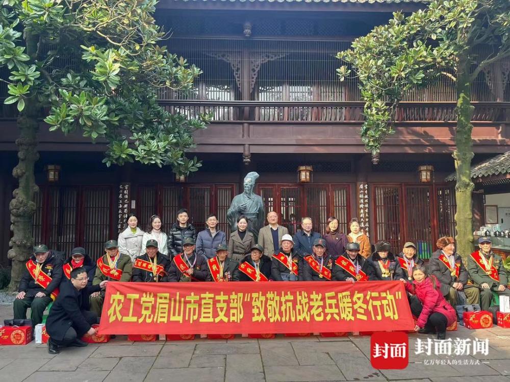 12月21日,冬至。四川眉山三苏祠博物馆东坡书院内,来了14位抗战老兵代表。当天,农工党眉山市直支部联合四川省普善公益慈善促进会眉山分会、三苏祠博物馆、眉山市老年病医院等单位,在这里举办“致敬抗战老兵暖冬行动”,为老兵进行义务诊疗,并发放暖冬慰问金和一些暖冬物资。
