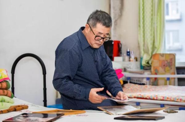 蒋润苑之子蒋光复正在翻看父亲照片。