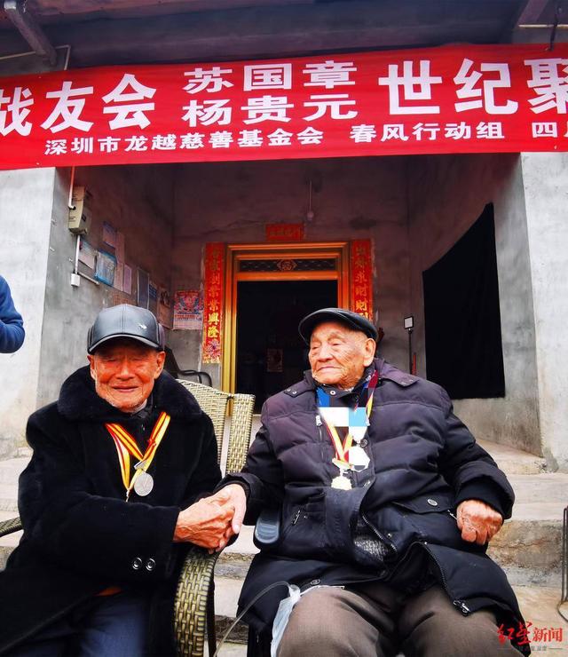杨贵元外孙女介绍,此前几个月,两位老人在成都曾见过,但当时因为是10多名抗战老兵相聚,两人并未深入交流。