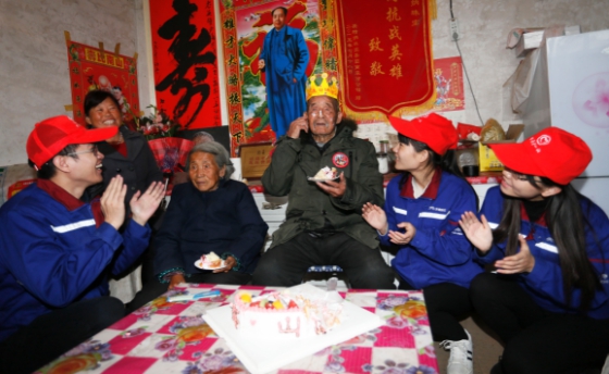 宇通公司志愿者为全省年纪最大的抗战老兵庆生