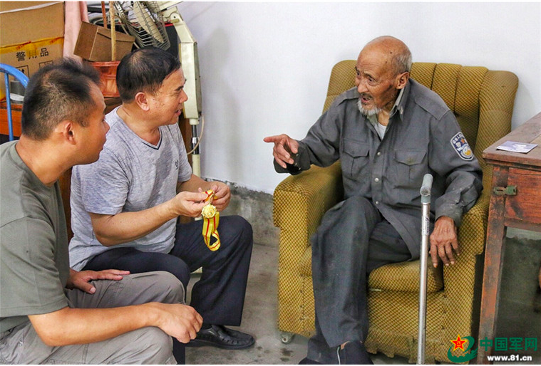 老兵今年95岁了,可以说子孙绕膝天伦人生,但是大家都有各自的工作、繁忙的农事,老人很难和全家子女在一起,时常也感到孤独。唯一让他骄傲的是,自己曾经是一名军人,是上过战场,真枪实弹和敌人拼杀过的军人。他挂在嘴边上的就是一句话,“我一生打过三家敌人。为国出力了,值得!”在给孙子打电话的时候,他最常说的话就是“好好听党的话!好好学政治练军事长本领!”