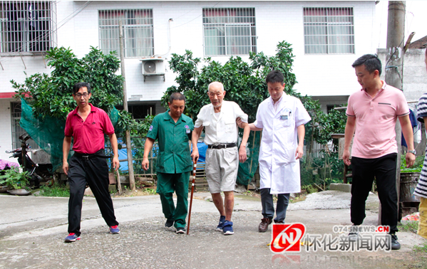 7月9日,沅陵县人民医院医疗队一行5人走进抗战老兵张大吉老人的家里,迎接他和老伴一起去医院进行健康体检。
