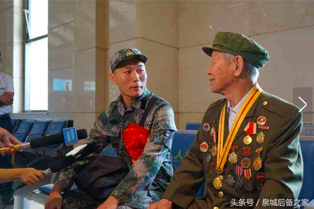 今年元旦,正在山东海事职业学院读大二的袁孟辰偶然间向太爷爷袁永福提起想去当兵时,老人立即伸出大拇指表示赞同。1月10日,全国兵役登记第一天,袁永福便亲自带着重孙袁孟辰前往济南市天桥区人武部进行兵役登记并报名参军。今年8月,经过严格的体检、政审和役前教育训练,袁孟辰顺利入伍至联勤保障部队服役。