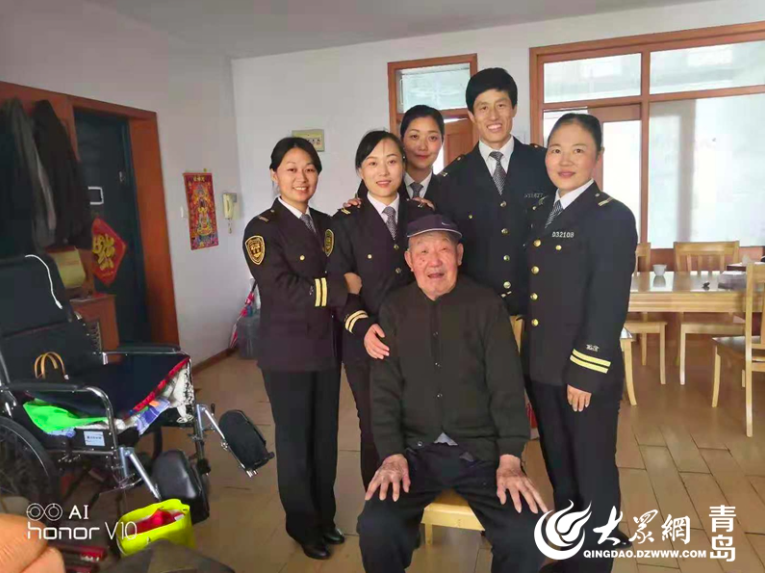 10月17日上午,交运西海岸温馨校车爱心志愿者一行5人带着米、面、油等慰问品来到新区滨海街道办事处南小庄,看望抗战老兵高振书。