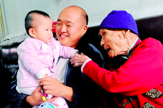 老人现在五辈同堂,非常幸福