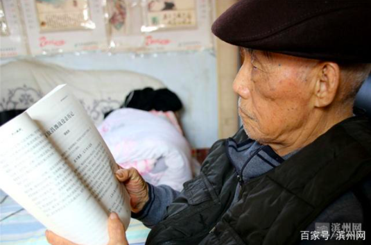 这位老人叫王玉文,1919年11月出生在原河北省海兴县小山乡东候村,目前在无棣良种畜禽繁育场(原无棣种驴场)的职工宿舍区居住。笔者赶到时,正好看到王玉文老人在津津有味儿地阅读《我的抗战》。“父亲虽然识字不多,但是喜欢看抗战故事的书,喜欢看抗战片,每晚不忘看新闻联播,时刻关心国家大事……”老人的大儿子王金星告诉笔者。