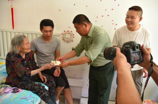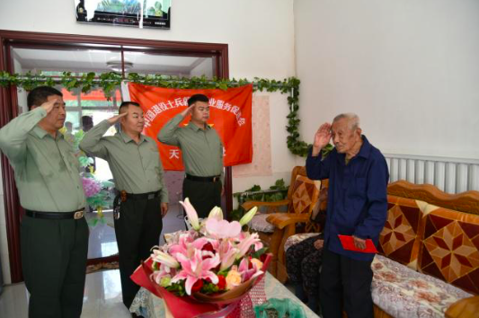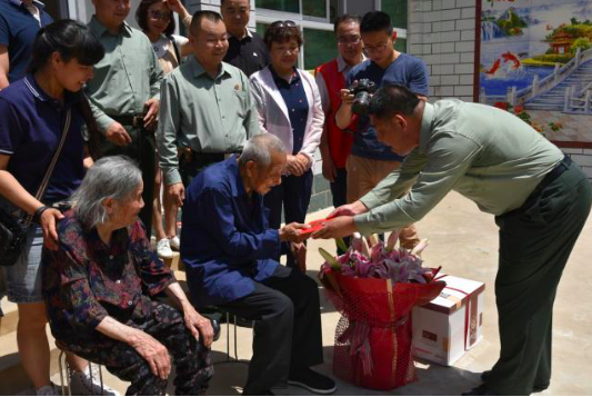 为了迎接中华人民共和国成立70周年,由中国退役士兵就业创业服务促进会天津办事处(简称中国退服天津办)、天津市西青区妙妙公益服务中心、天津市庆达投资集团有限公司联合主办的“迎建国70年 向老兵致敬”系列活动,5月23日上午,第一站来到蓟州区候家营镇西桥头村周玉清老兵的家中,一起为老人98周岁生日祝寿。
