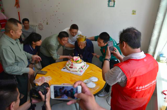 天津市西青区妙妙公益服务中心负责人蒋妙妙说,“迎建国70年 向老兵致敬”系列活动,近期还要进行端午爱心看望老兵活动,为101岁老兵曹桂山、98岁老兵马乾分别举办百岁生日庆典活动,争取在今年建国70年大庆前,对天津市所有能联系上的老兵走访一遍。说到这几年做老兵爱心公益活动,蒋妙妙激动地说,我们做得太晚了!现在我们在和时间赛跑,能在他们有生之年、之月、之天,多做一点是一点,真的是有太多太多的遗憾!