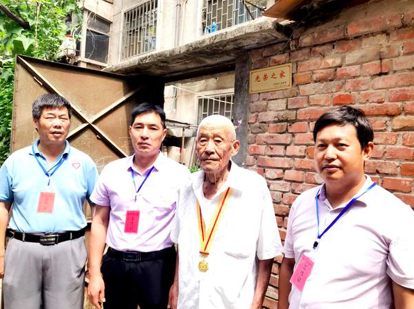 今年是抗日战争胜利74周年,也是中华人民共和国成立70周年,为表达党和政府对抗战老兵的关爱及敬意,7月9日,周口市黄泛区农场有关部门组成的慰问团,看望了94岁高龄的抗战老兵张望一,并为他家悬挂了“光荣之家”的牌匾。