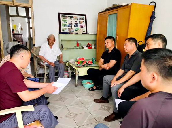 在张望一老人家中,慰问团与老人及亲属交谈,了解老人的身体状况,生活上有没有困难,并给老人带去了慰问品。随后,大家一起把“光荣之家”的牌匾,悬挂到老人家的大门口。 “光荣牌虽小,但意义深远,光荣牌作为党和政府给予的崇高荣誉,承载着社会对军人家庭的崇敬与尊重,体现的是军民团结的浓厚感情”。周口黄泛区农场七分场场长尹向进说。