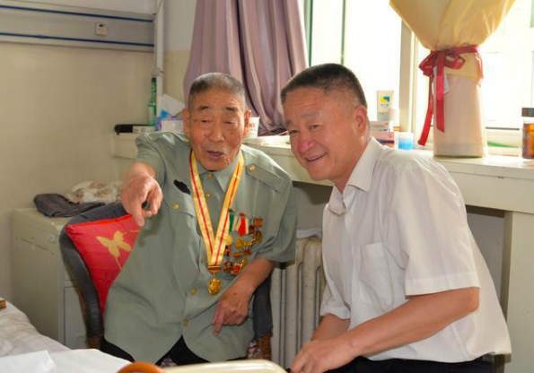 当见到精神矍铄、身体硬朗的冯明福老人,大家团团围了上去,亲切地同这位参加过百团大战、兰州战役等大大小小数次战斗,获得独立自由奖章、解放奖章、纪念中国人民抗日战争胜利70周年奖章等荣誉的老兵握手致意。老人向大家一一展示着保存的年代久远、意义重大的证书、奖章,其中中国人民解放军预备役军官兵役证上时任中华人民共和国国防部部长“彭德怀”手写体印章格外引人注目。围坐在老人身旁,听着亲历的日本侵略者滔天罪行,中国人民英勇反击,戎马生涯的从军经历以及复员到地方投身经济社会建设,坚定的革命意志,豪迈的坚毅性格,乐观的人生态度,深深感染了在场的每一个人。