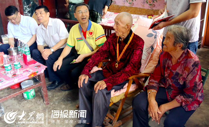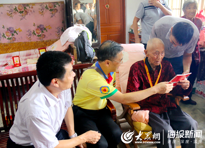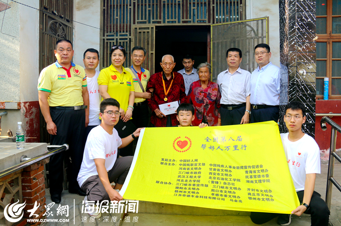 8月13日,全国第八届“帮好人万里行”慰问团来到定陶区仿山镇,看望曾经荣立一、二等功的抗战老兵邓斌。全国“帮好人万里行”组委会向老兵邓斌赠送了勋章、书籍并发放慰问金1000元。市、区退役军人事务局相关领导陪同慰问。
