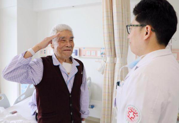 昨天,在亚心总医院心脏中心的病房里,一位92岁高龄的抗战老兵,用最标准的军礼对心脏中心的医务人员表达了自己最诚挚的感谢。