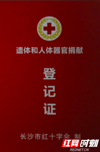 仲振江的遗体和人体捐献登记证。