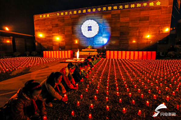 2011年12月12日,南京大屠杀遇难者守灵暨烛光祈祷和平晚会小学生摆放红蜡烛