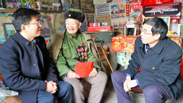 1月8日,适逢春节即将来临之际,邹城市退役军人事务局组织工作人员赴唐村镇西颜村,看望慰问抗战老兵李法真,为老人送去了慰问金和慰问品。