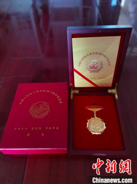 图为老兵刘贵如生前荣获的“抗日战争胜利70周年纪念章”。张帆 摄