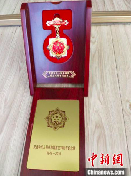 图为老兵刘贵如生前荣获的“中华人民共和国成立70周年纪念章”。张帆 摄