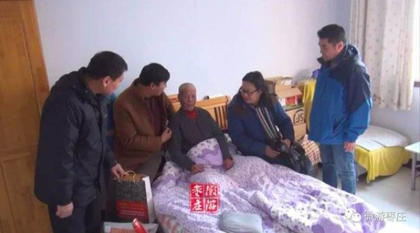 第一次见到孙法胜的时候是枣庄是关爱抗战老兵志愿者组织的“春节慰问抗战老兵”的活动,当时老人躺在床上,旁边有一个氧气瓶,王功彬老师一进门就问他还记得我们吗?老人说,记得记得,就是眼睛看不清了。