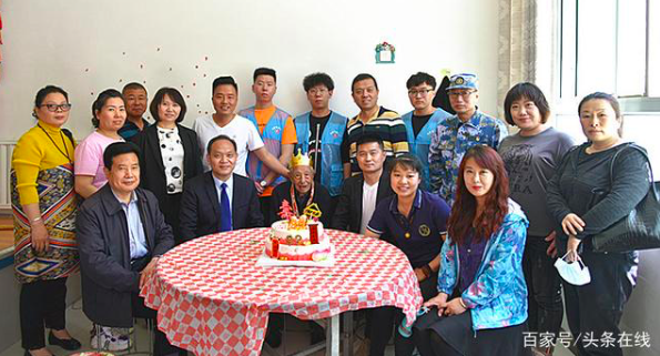 天津市市场营销协会会长周新刚给抗战老兵过生日
