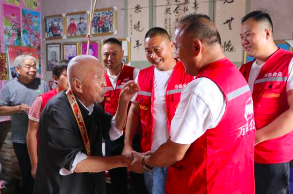 6月28日,细雨如织。万达公益团队的志愿者们驾车来到鹿邑县任庄村看望慰问抗战老兵张世珍,听老兵讲述抗日战争、解放战争的故事。