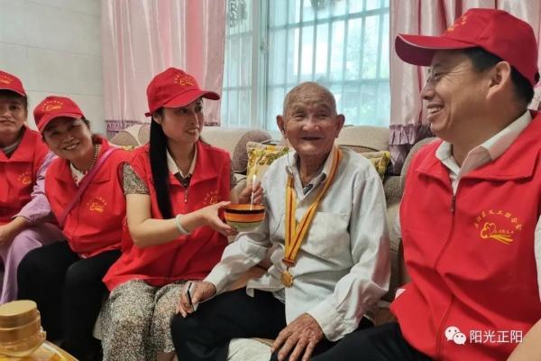 6月14日是一年一度的端午节,正阳义工联合会的志愿者走进清源街道慰问抗战老兵,为老人们送去节日的祝福。
