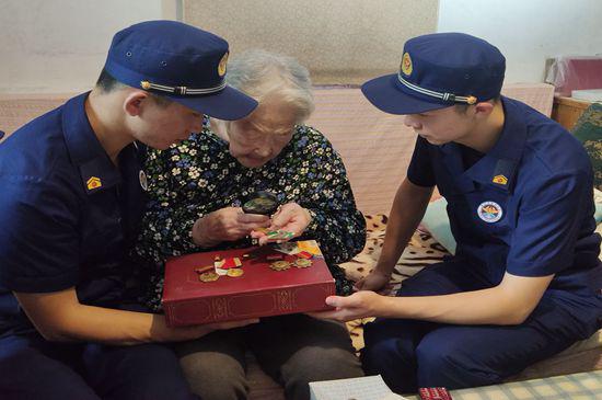 岁岁重阳,今又重阳。10月14日上午,在重阳之际,景区消防大队指战员们带着米、油等慰问品,上门看望抗战老兵赵桂庭,为老人送上节日的祝福,与老人共话峥嵘岁月。