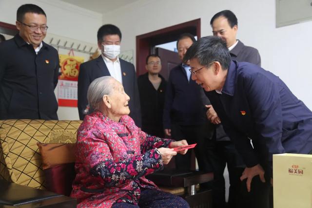 今年101岁的百岁老人孙引样耳聪目明、精神矍铄,生活起居全部自理,看起来十分精神。周新强向老人送上慰问品和慰问金,详细了解了老人的身体和生活情况,叮嘱工作人员和家属,百岁老人是家庭的福气,今年寒冷天气提前,要根据天气变化,及时做好供暖保暖工作,细心照顾老人起居饮食,为老人营造良好生活环境,让老人幸福安度晚年。周新强指出,敬老爱老,善德之始。老年人是全社会的宝贵财富,过去为党的建设、国家富强、社会进步作出了历史贡献,现在仍然在赓续红色血脉、传播知识经验、传承优秀文化中发挥着重要作用。全市上下要把加快发展老龄事业作为人民生活高质量发展的重要内容,积极应对人口老龄化,聚焦重点难点问题,完善社会保障,织密服务网络,深化医养结合,构建养老、孝老、敬老政策体系和社会环境,提升养老质量,真正实现老有所养、老有所医、老有所为、老有所乐。各相关部门、镇办要尽心尽力为群众办实事、做好事、解难题,特别是要把老年人照顾好、服务好,在全社会营造敬老爱老的浓厚氛围。