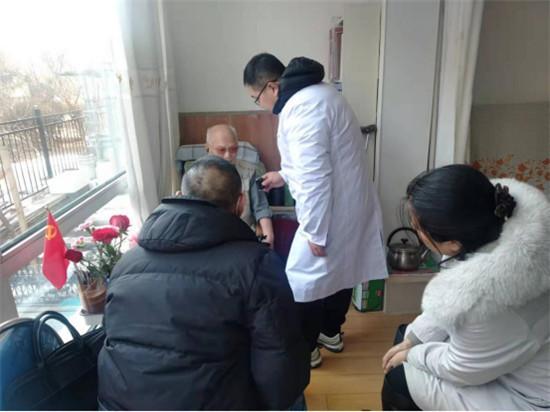 1月14日,二道区东站街道纪工委书记金丽萍、共建单位负责人王福军及一名医生在紫盈社区工作人员的陪同下来到抗战老兵孟繁德家里,为老人检测听力,并送上助听器,以此表达对老兵崇高的敬意和真切的关怀。