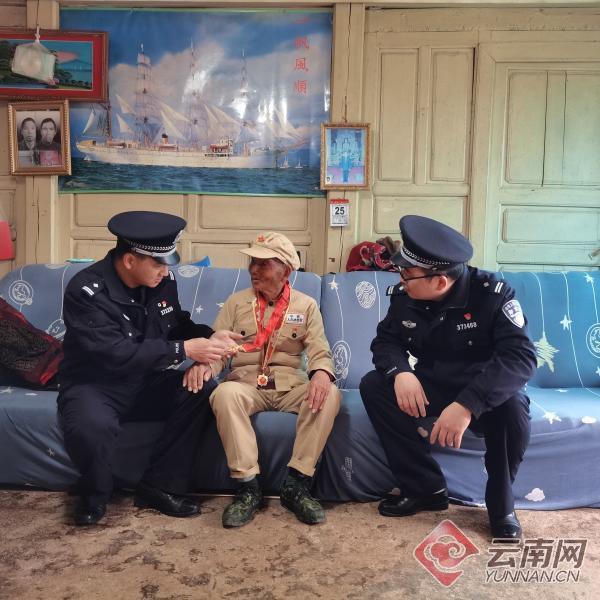 时值春节到来之际,云南德宏边境管理支队勐戛边境派出所民辅警前往辖区探望高龄老党员抗战老兵李冠冕,为老人送去节日慰问品,并向其送去诚挚的问候和崇高的敬意。