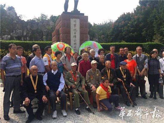 “每次来到这里,都会想起战友。”94岁的陈开义在女儿陪同下到来,虽不是地道的四川人,但他却爱着这片土地,“抗战期间,川军为国付出巨大,作为新四军我很敬佩。”