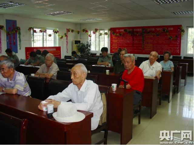 干休所每次上党课,周智夫(前排右)都坐在第一排听讲。