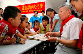 寒暑假,抗战老兵,给青少年讲革命抗战故事。