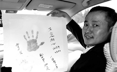 11月5日,仪征市红色文化艺术馆馆长李臣星,展示他刚刚征集到的103岁“抗日老兵”姚一汉的手印及题字。